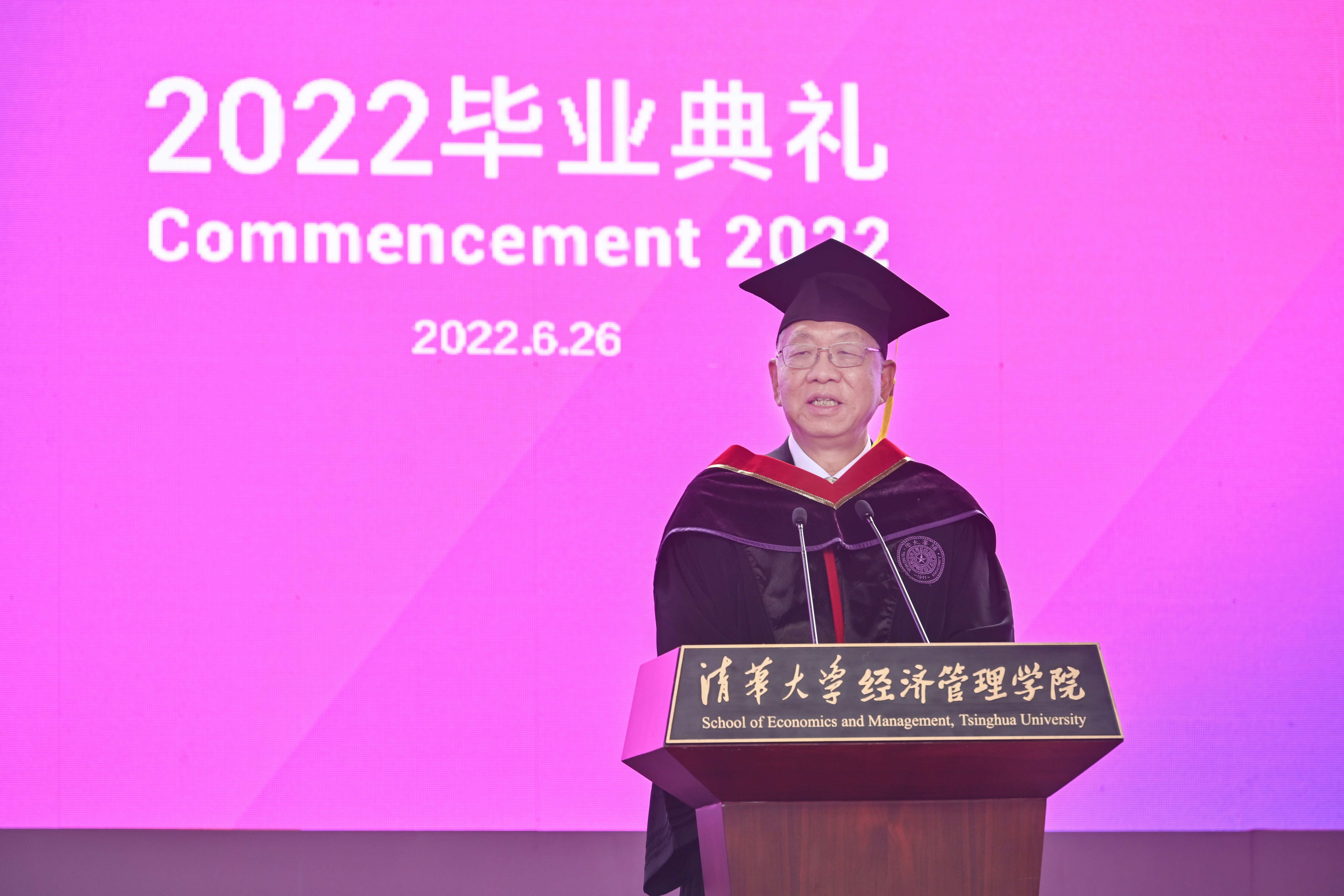 清华新闻网6月30日电 6月26日,经管学院2022年毕业典礼举行。学院部分在京的2022届毕业生与部分学院教师现场参加了活动,未能到达现场的毕业生及其亲友通过直播参加“云典礼”。清华大学讲席教授、丘成桐数学科学中心主任、求真书院院长、北京雁栖湖应用数学研究院院长丘成桐先生发表了毕业典礼演讲,经管学院院长白重恩主持毕业典礼。
