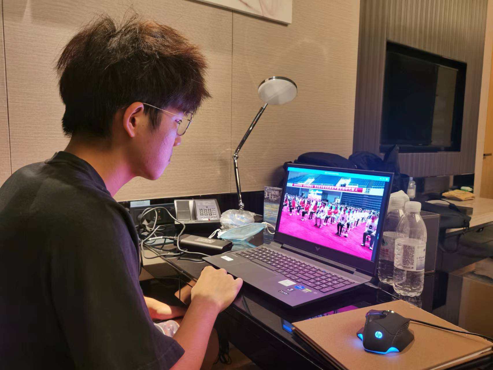 陈罗曦在隔离酒店中观看开学典礼
