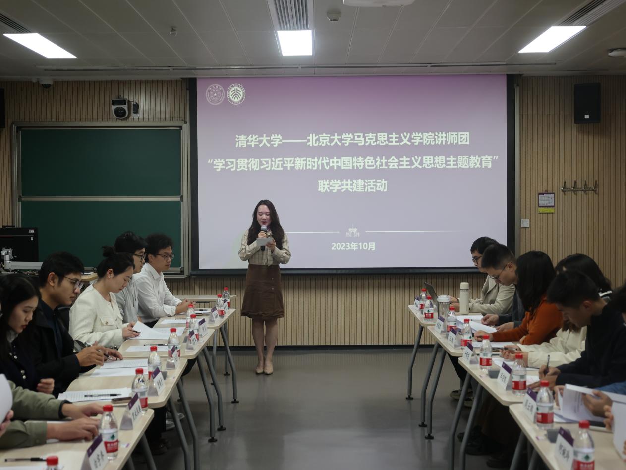 清华新闻网11月10日电 为深入学习贯彻习近平新时代中国特色社会主义思想,加强各高校马克思主义学院讲师团间的合作与联系,更好地培育政治理念坚定、理论功底扎实、专业素质过硬的青年讲师,近日,清华大学马克思主义学院理论报告团与北京大学马克思主义学院研究生讲师团开展联学共建活动。北京大学马克思主义学院团委书记曾格子、清华大学马克思主义学院党委研工组副组长车宗凯、清华大学马克思主义学院理论报告团团长王璇、北京大学马克思主义学院研究生讲师团团长白宇乔及两院研究生会、研团总支和学生党支部的代表等参加活动。