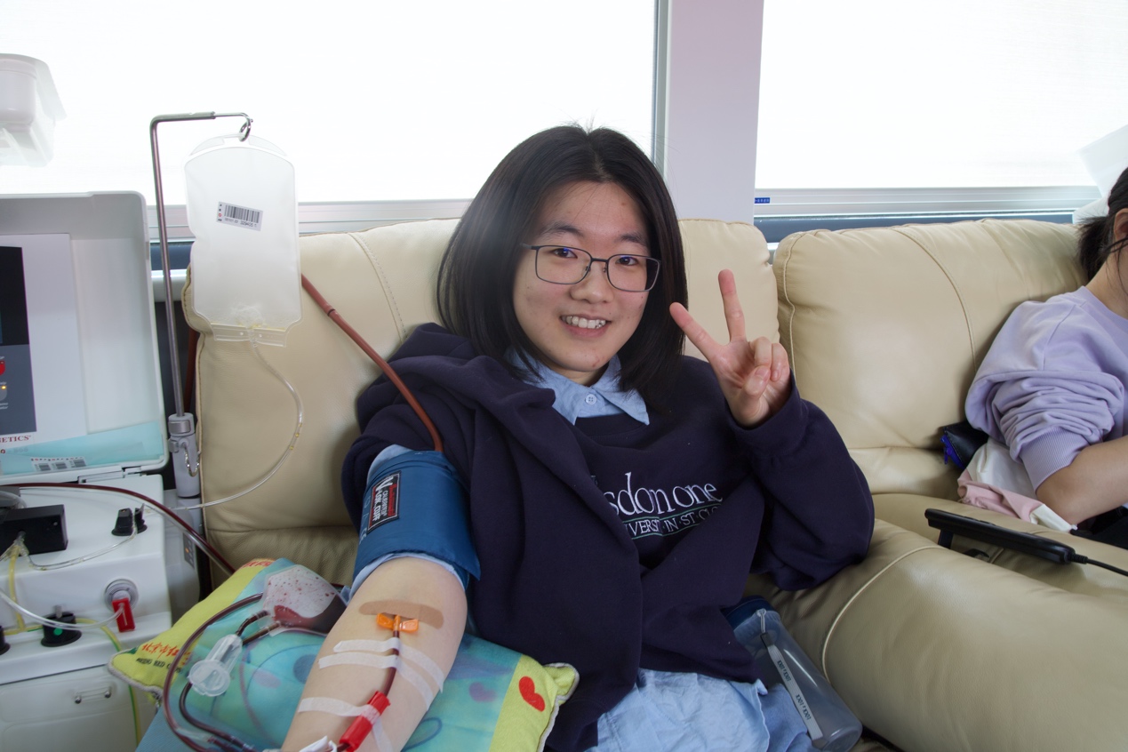 医学院2022级硕士生臧伯杨在本次成分血献血专场活动中有幸成为清华大学第2500名成分献血者。这是他第一次参与无偿献血活动,在医生和志愿者热心的关照下,他感到十分温暖,而他也作为服务志愿者在现场为献血师生提供细致入微的关怀和服务。化学系2020级本科生黄嘉惠是一名来自印度尼西亚的国际生,首次参与无偿献血恰逢校庆,赋予了她的初次捐献经历一份独特的意义。
