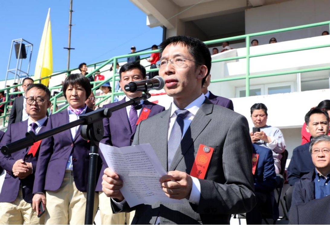 北京冬奥会志愿者、上一年度“马杯”乙组冠军环境学院2021级博士研究生郑铁代表运动员宣誓,体育部副教授冯宏鹏代表裁判员宣誓。