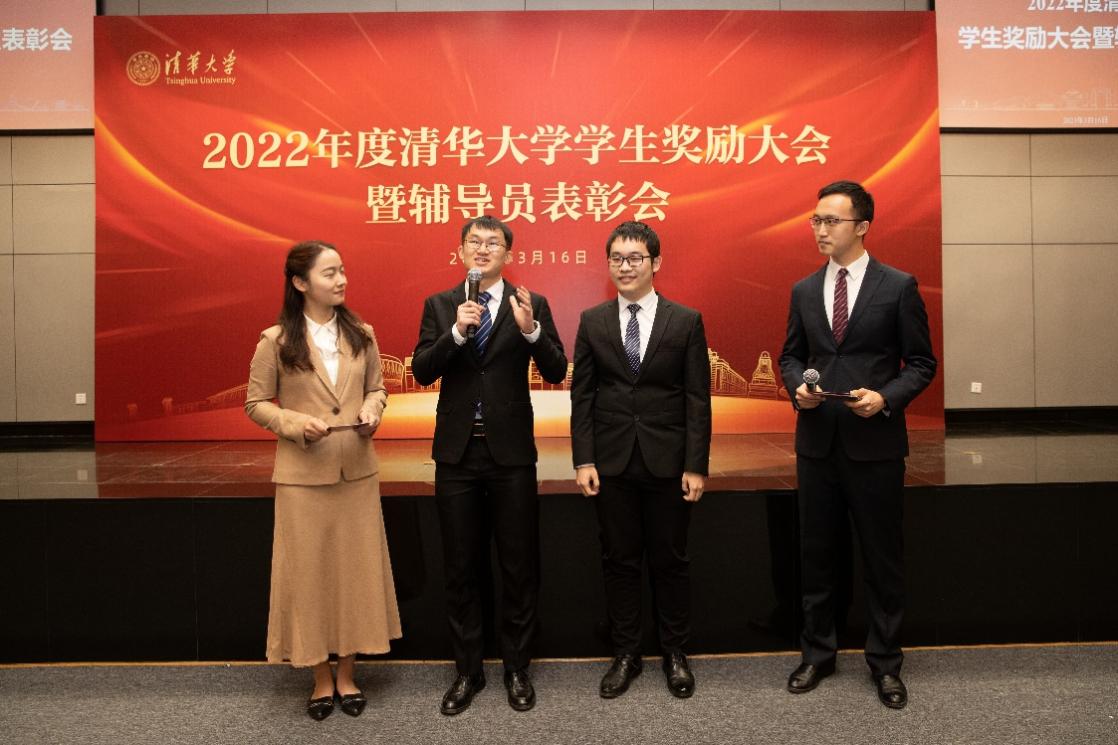 先进班集体代表、建筑学院建91班闫霄玥分享了班集体注重以党和国家重大事件为契机,以建筑学科特色为载体,在集体中成长、通过集体建设发扬“又红又专”的光荣传统的经历。“清华很大,大在给了我们无限的可能,感恩我拥有了这份可能。”本科生特等奖学金获奖学生代表、新雅书院李镇尧讲述了自己从初入学时屡屡受挫,到通过挖掘兴趣爱好、拓展阅读视野、学好通识课程,最后实现全面发展的成长历程。研究生特等奖学金获奖学生代表、电机系许超群用三个和电网有关的故事分享了自己用知识服务乡村电力建设、无惧上百次失败、努力解决“卡脖子”难题的科研经历。他认为,成功的前提是坚定理想、保持坚韧、勇者不惧,“自强不息、厚德载物”的校训可以做最清晰的提挈和总结。