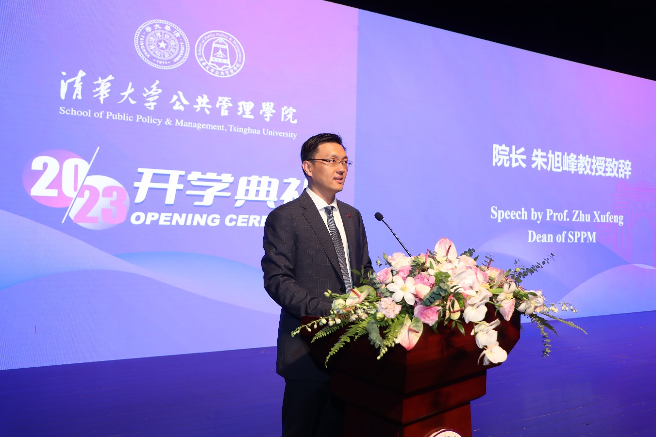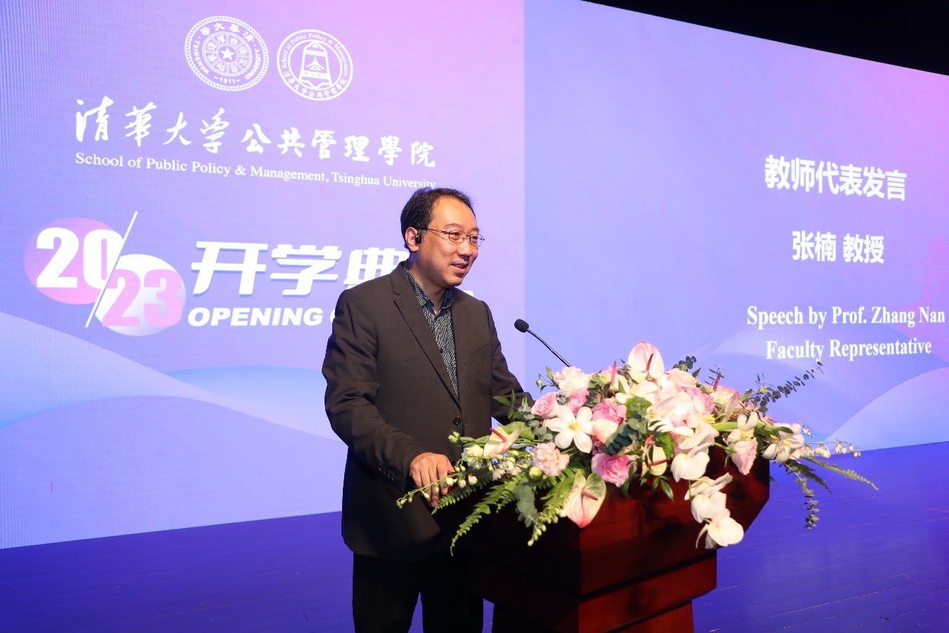 清华新闻网9月4日电 9月1日下午,清华大学公共管理学院2023年开学典礼在蒙民伟音乐厅举行。学院党委书记彭宗超,院长朱旭峰,副院长王亚华、殷成志,香港城市大学商学院副院长郝刚,香港城市大学教授、清华大学-香港城市大学MPA-EMBA项目联席主任俞伟峰,香港警察学院副院长蔡栋材,香港警察学院训练统筹及联络科总督察刘家业,教师代表张楠、潘洁、唐啸、慕玲等现场参加开学典礼。500余名新生以线上线下相结合的方式参加开学典礼。开学典礼由学院党委副书记兼副院长谢矜主持。