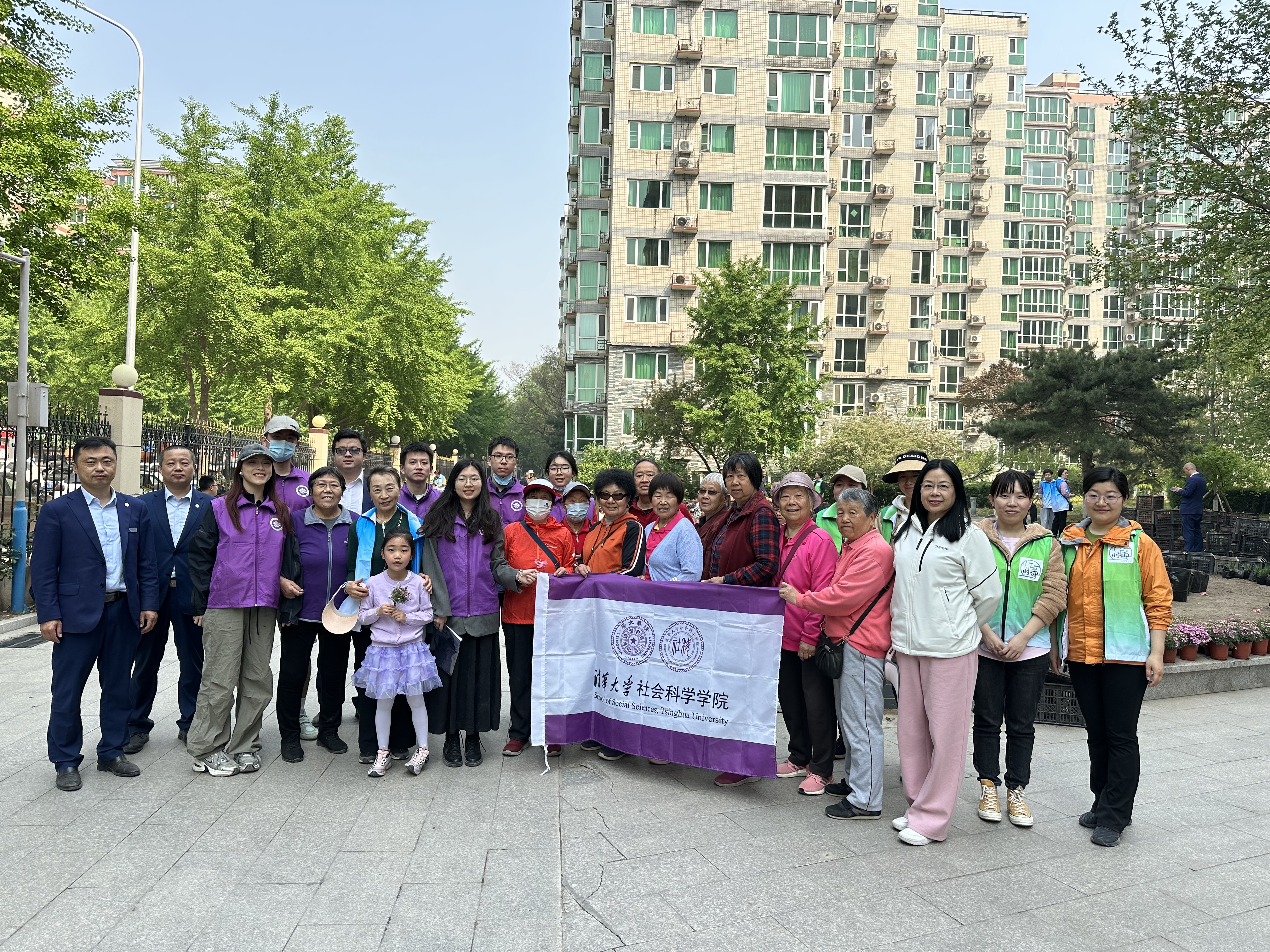 4月21日,社科学院研究生团总支积极响应清华大学研究生团委“种地吧,清华人”专项劳动教育活动号召,将校园农场首次拓展到街道、社区中,“整建制”组织社科硕231、硕232、硕222、硕212与博222等班团集体的成员一同前往曙光街道时雨园社区春荫园小区参与小区共建花园花卉农业种植活动,服务社区微花园建设。时雨园社区党委书记、居委会主任姚静与40余名社区工作者和居民共同参与活动。