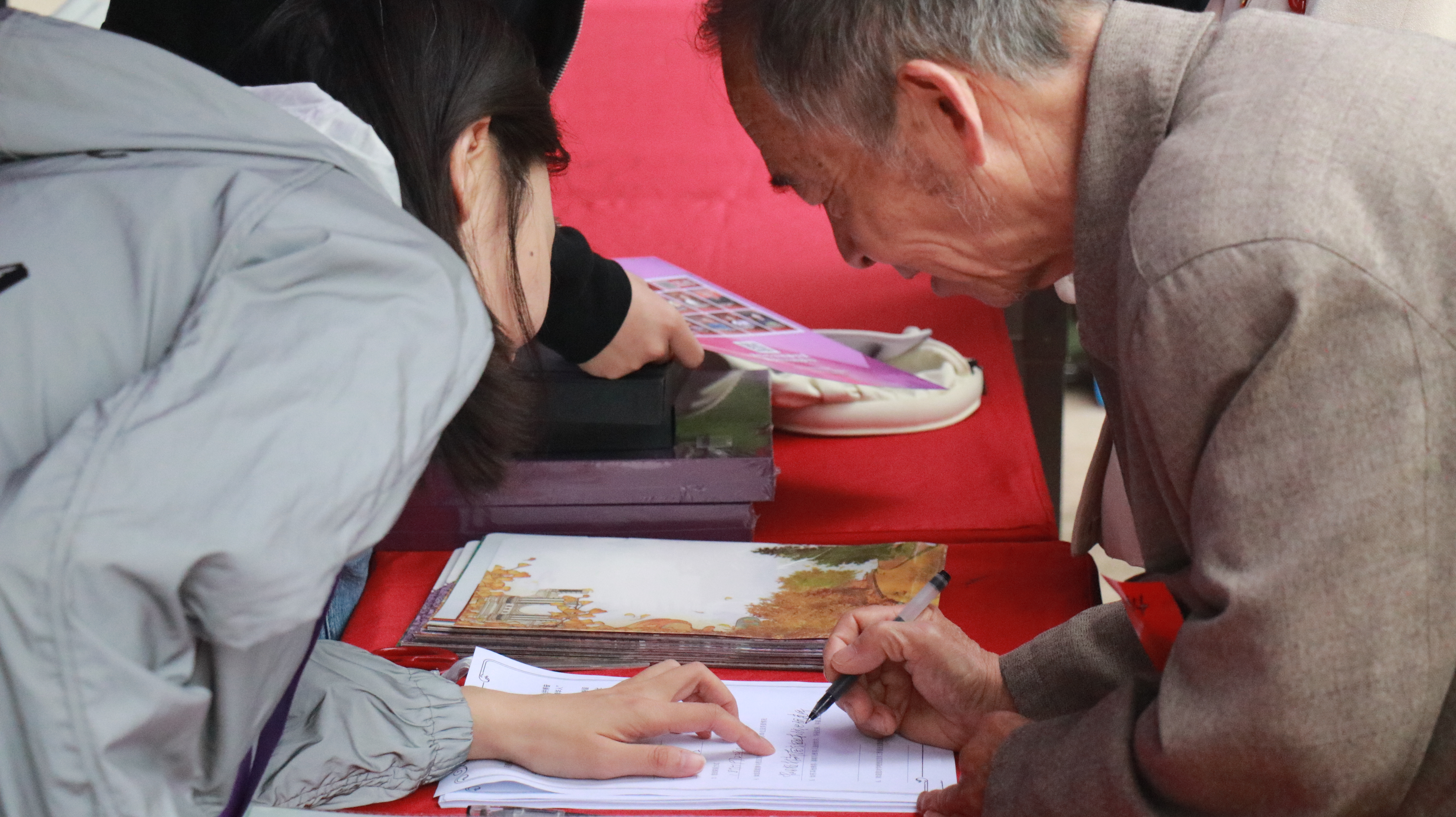 活动宣传海报中央印有一个格外显眼的二维码,那是“清华校友故事征集”问卷的“入口”。在听取志愿者介绍后,校友们纷纷停下脚步、聚到桌前,踊跃填写问卷、留下故事线索。在“云端”,清华校友故事“纪念册”就这样一点点成形。