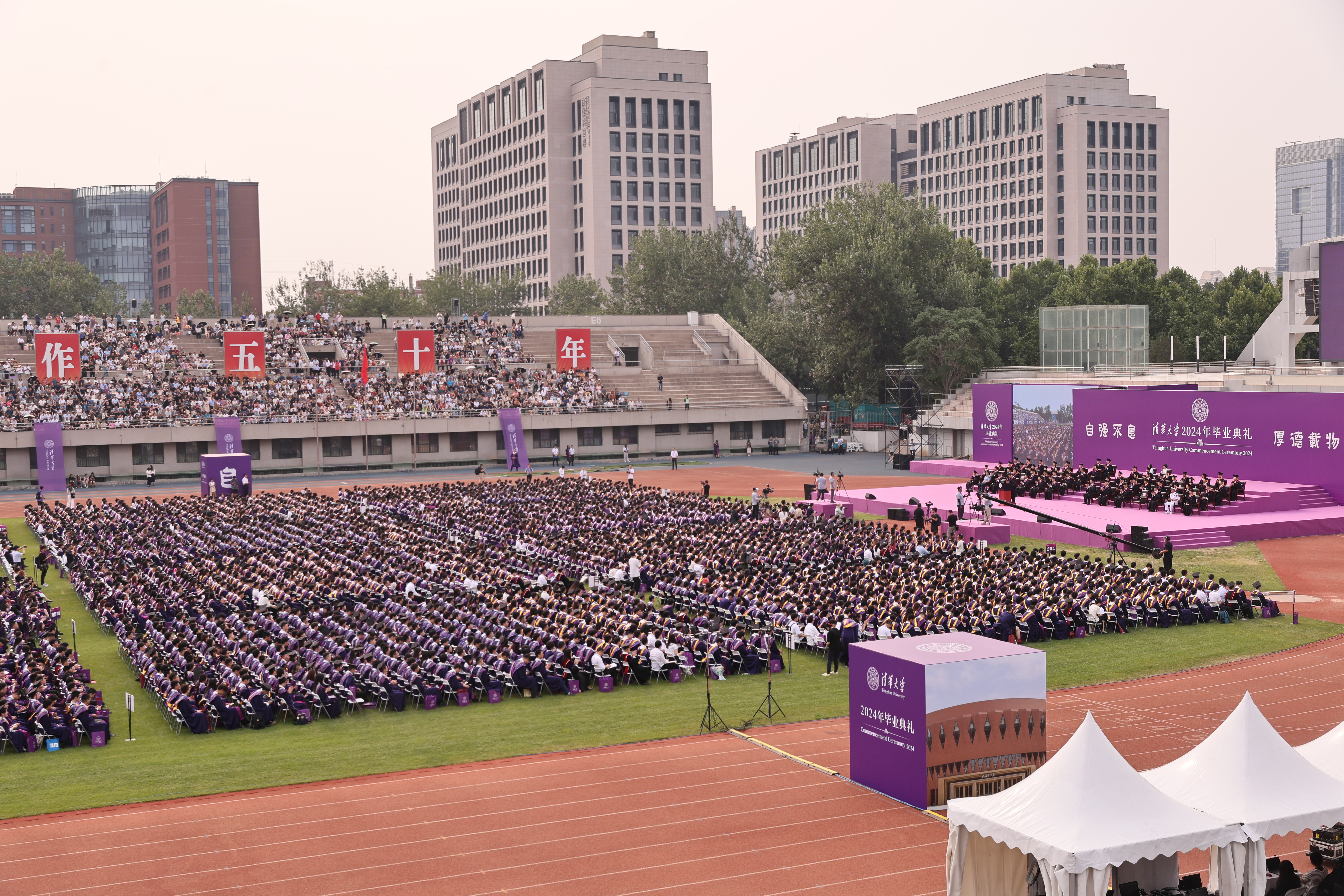 清华新闻网6月29日电(记者 王晓霞 摄影 李派 杨屿涵 霍元东 刘童 于乐言 昕琦)6月29日上午8时,清华大学2024年本科生毕业典礼在东大操场举行。