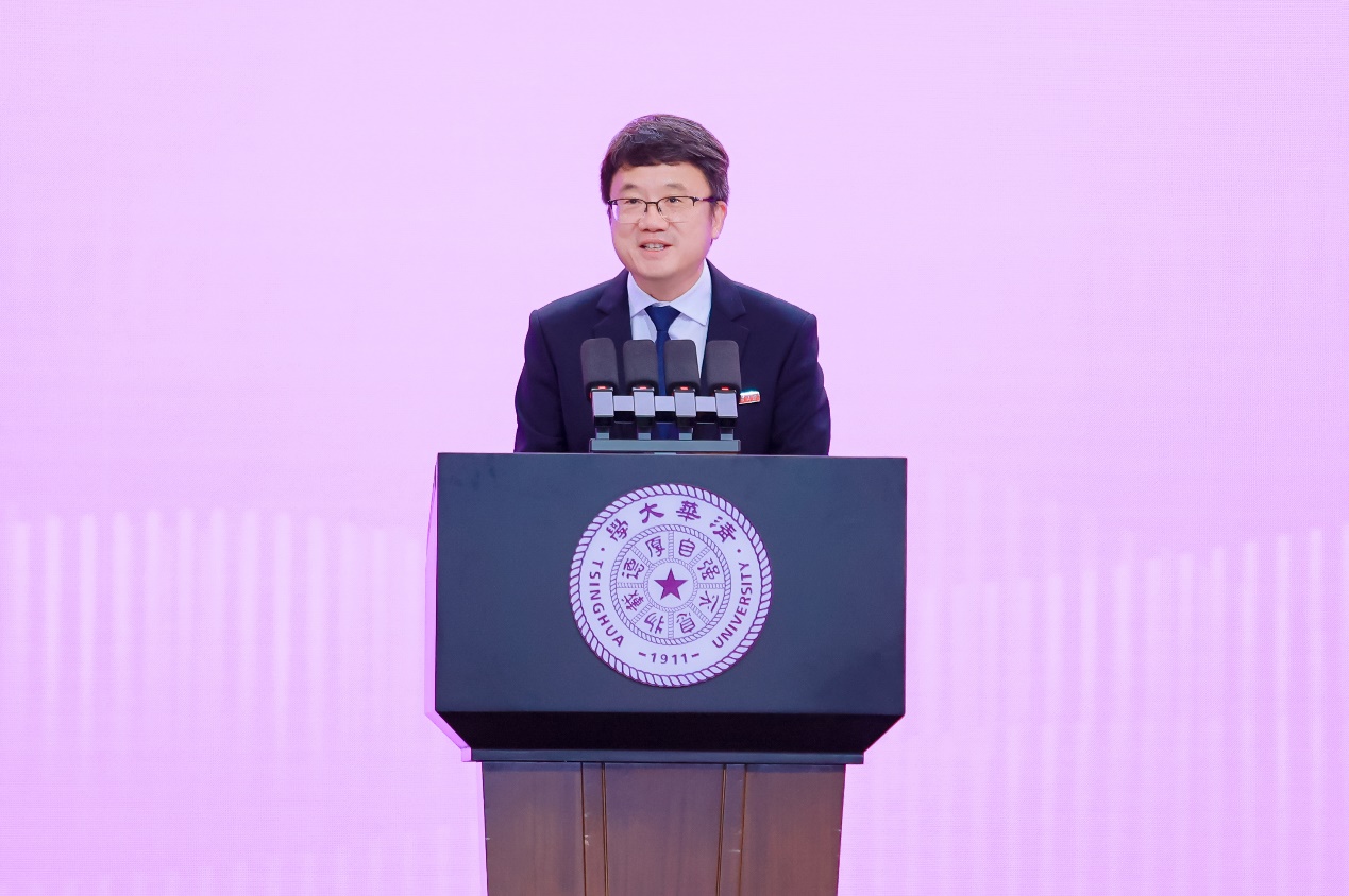 清华大学1986级汽车工程系校友、深圳光峰科技股份有限公司创始人兼董事长李屹作为校友代表,回顾了自己在清华园的学习和生活以及光峰科技的发展历程,鼓励大家用自身所学推动社会的发展进步,为人类创造更美好的生活,祝愿深圳国际研究生院走出越来越多的优秀人才,为国家的发展贡献清华力量。