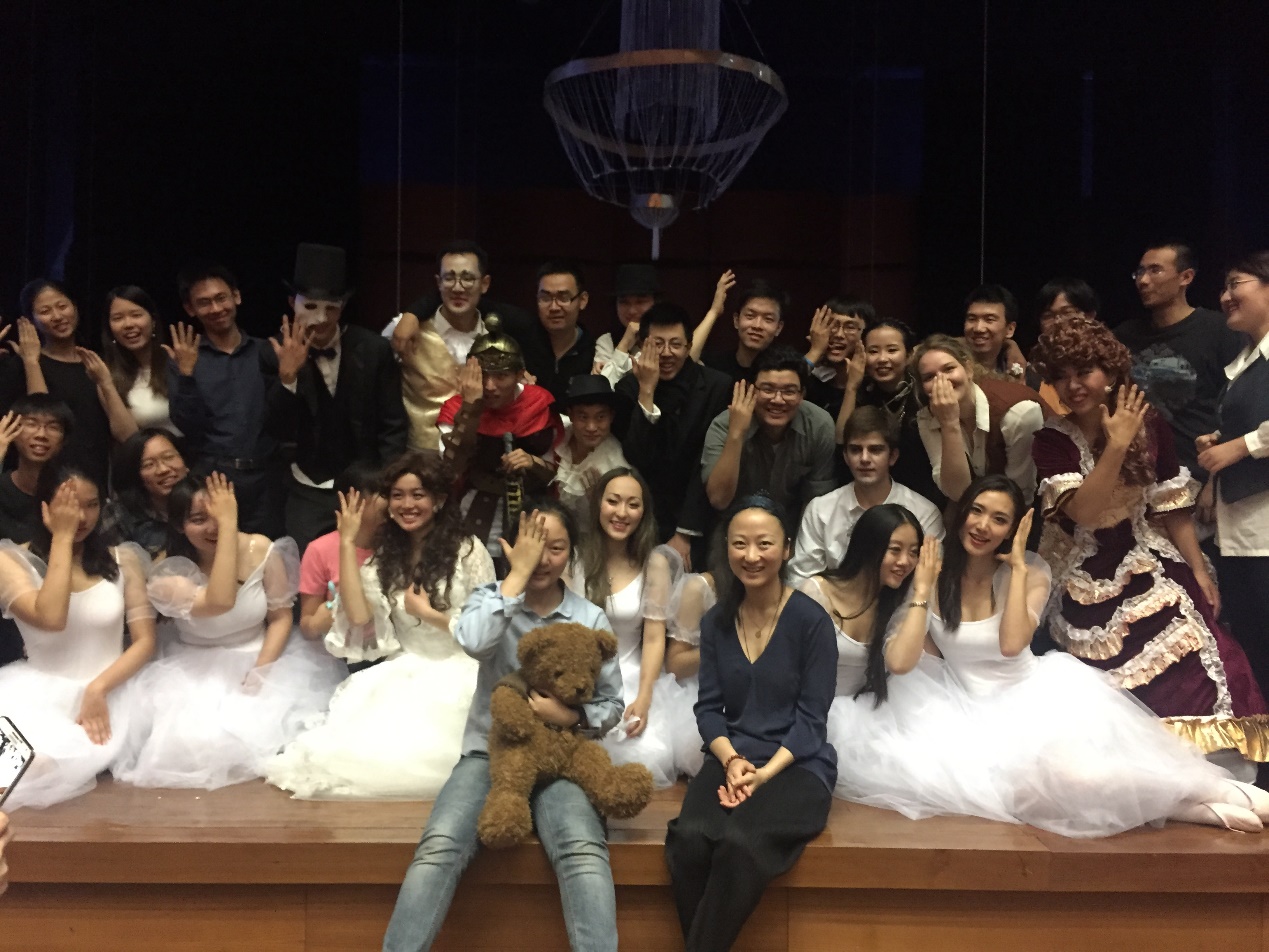 作为清华音乐剧社指导教师,罗薇和《剧院魅影》剧组同学在舞台谢幕。