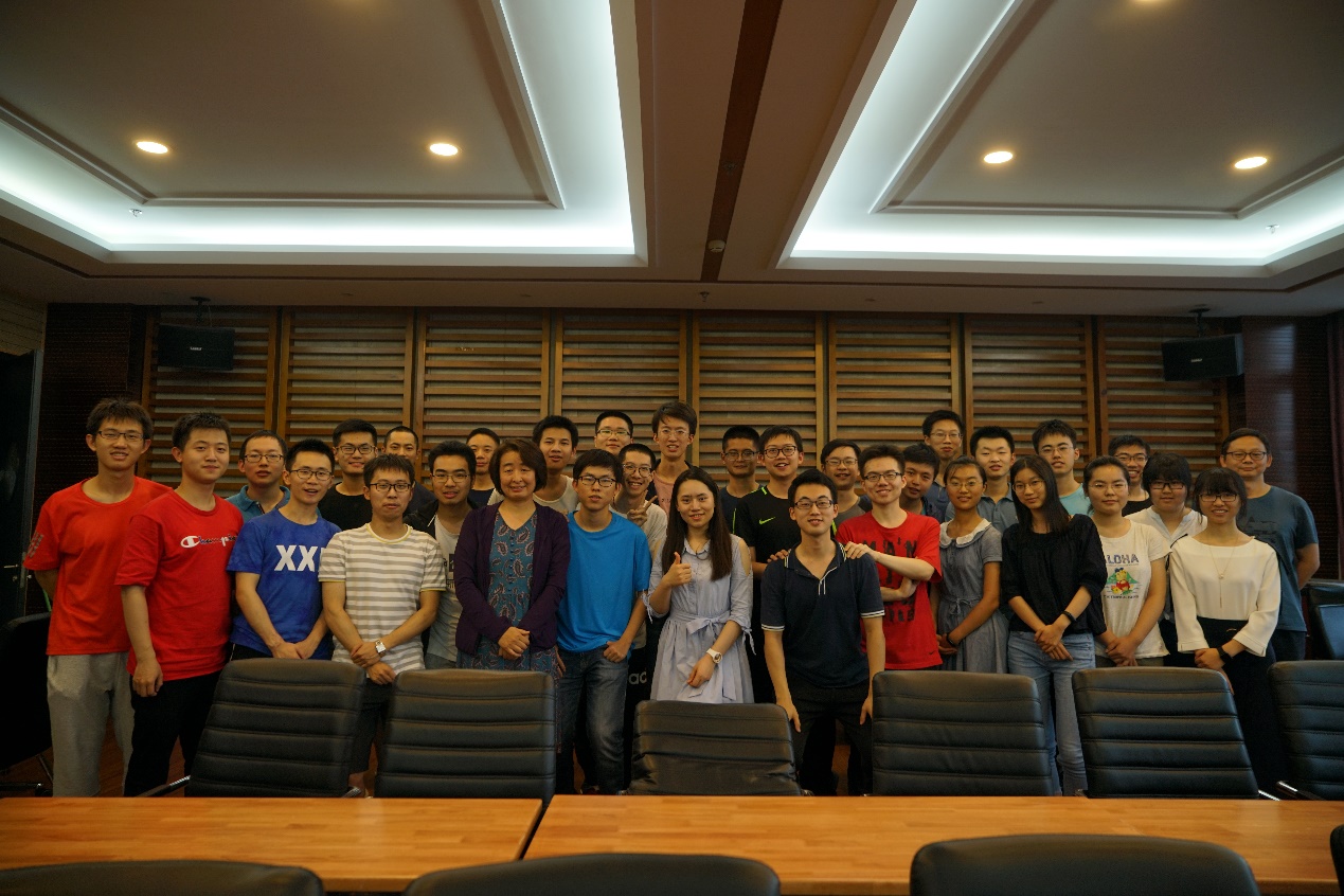 获颁清华大学“良师益友”奖后,许春晓和同学们在日晷前合影留念。