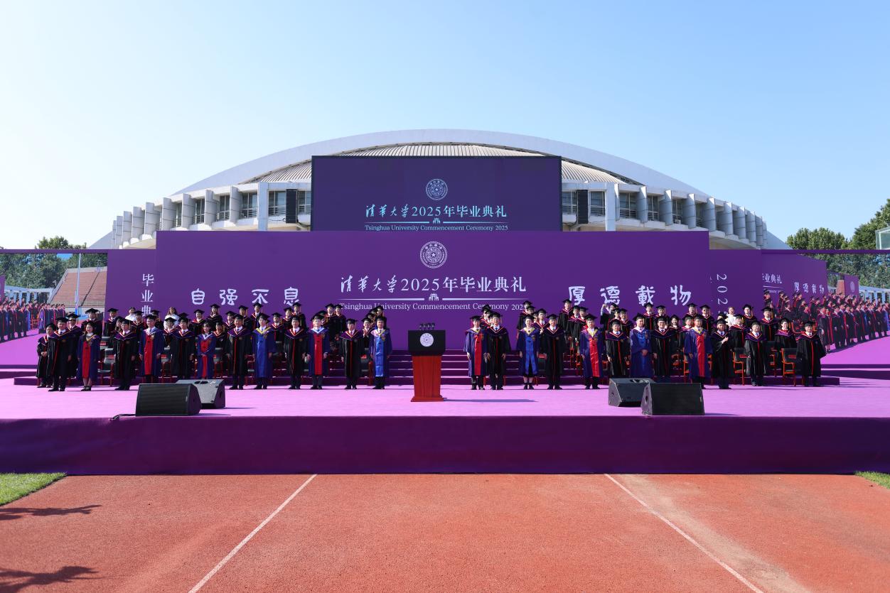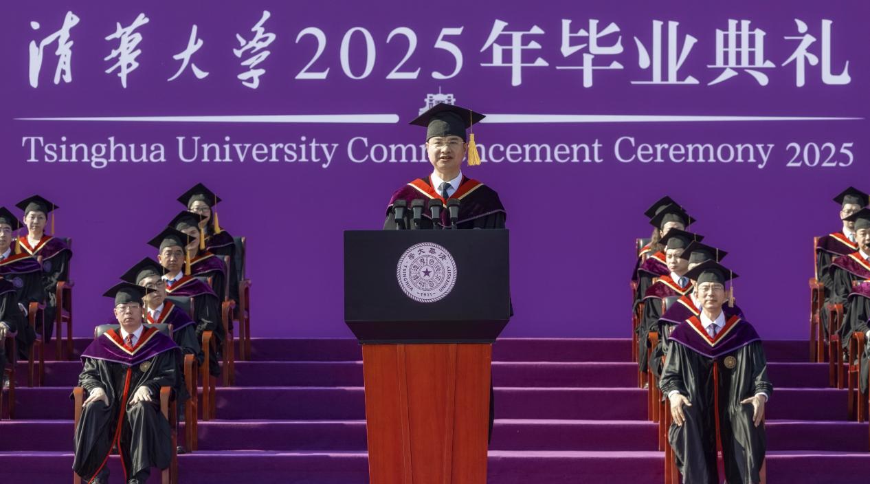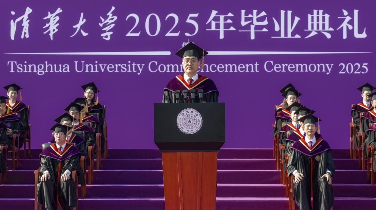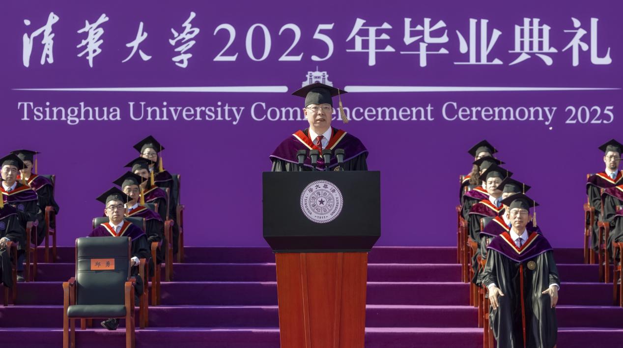 校党委书记邱勇宣读《关于表彰2025年清华大学优秀博士毕业生、优秀硕士毕业生的决定》并寄语毕业生们涵养浩然正气、坚持守正创新、厚植为民情怀,锤炼作风、砥砺品格,在全面推进中国式现代化的宏伟事业上肩负时代重任、留下青春足迹。