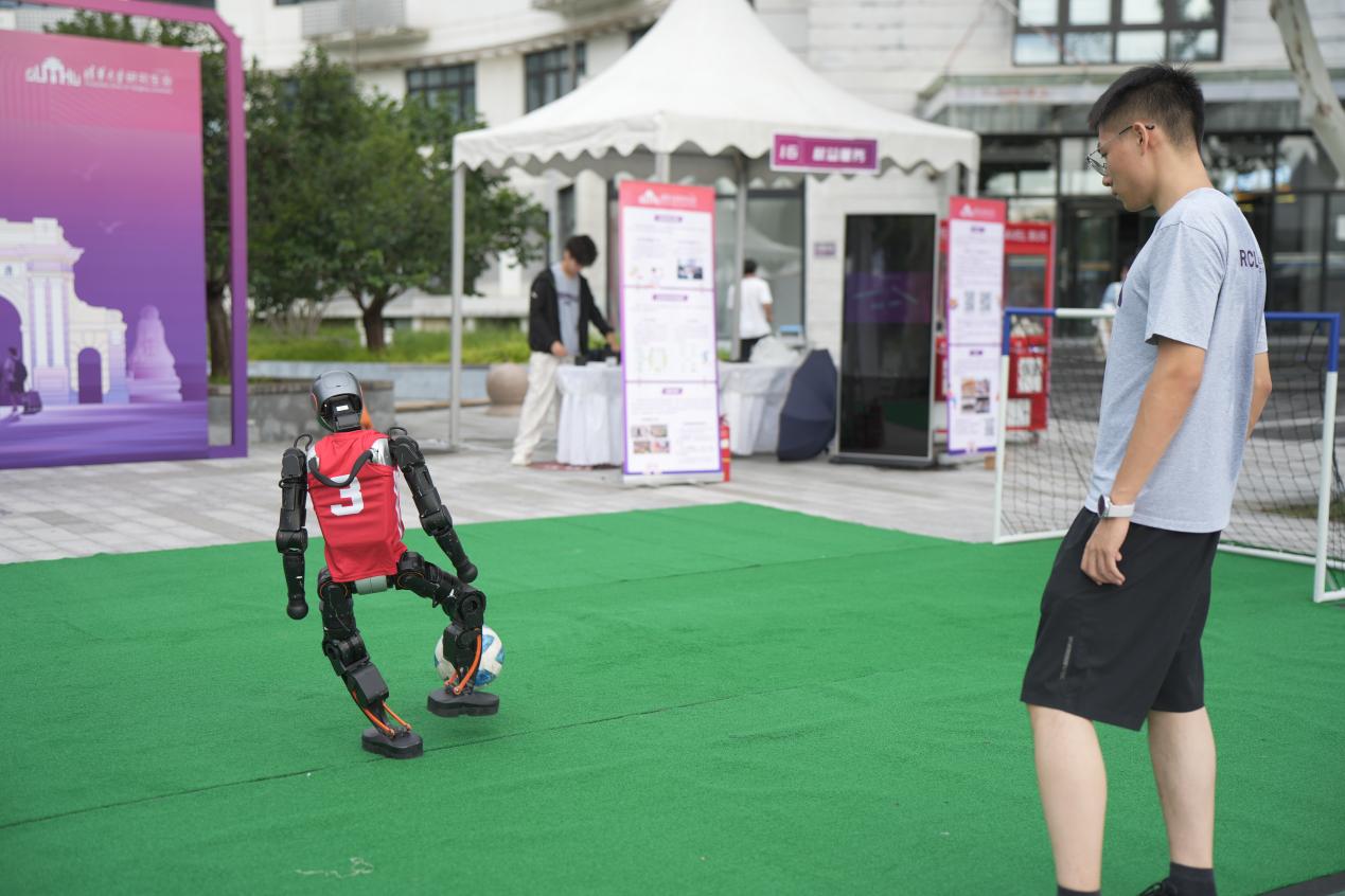 同学们惊喜地发现,在刚刚结束的首届人形机器人足球5V5比赛中夺冠的清华火神队机器人,也是迎新队伍的一员。迎新点还配备了一块触控电子展示屏,新生可以现场登陆“水木汇”微信小程序,体验校园一站式智能化生活服务。