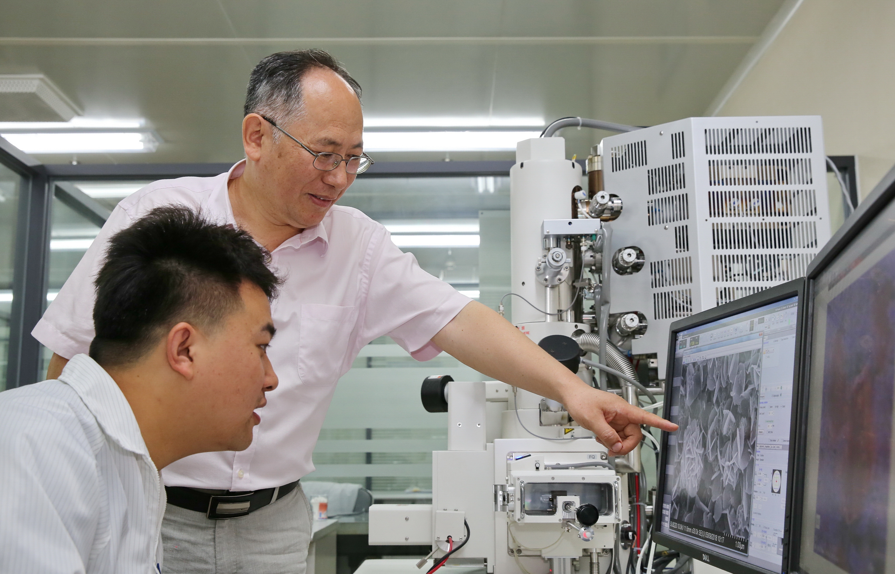 阎绍泽在实验室中指导学生。