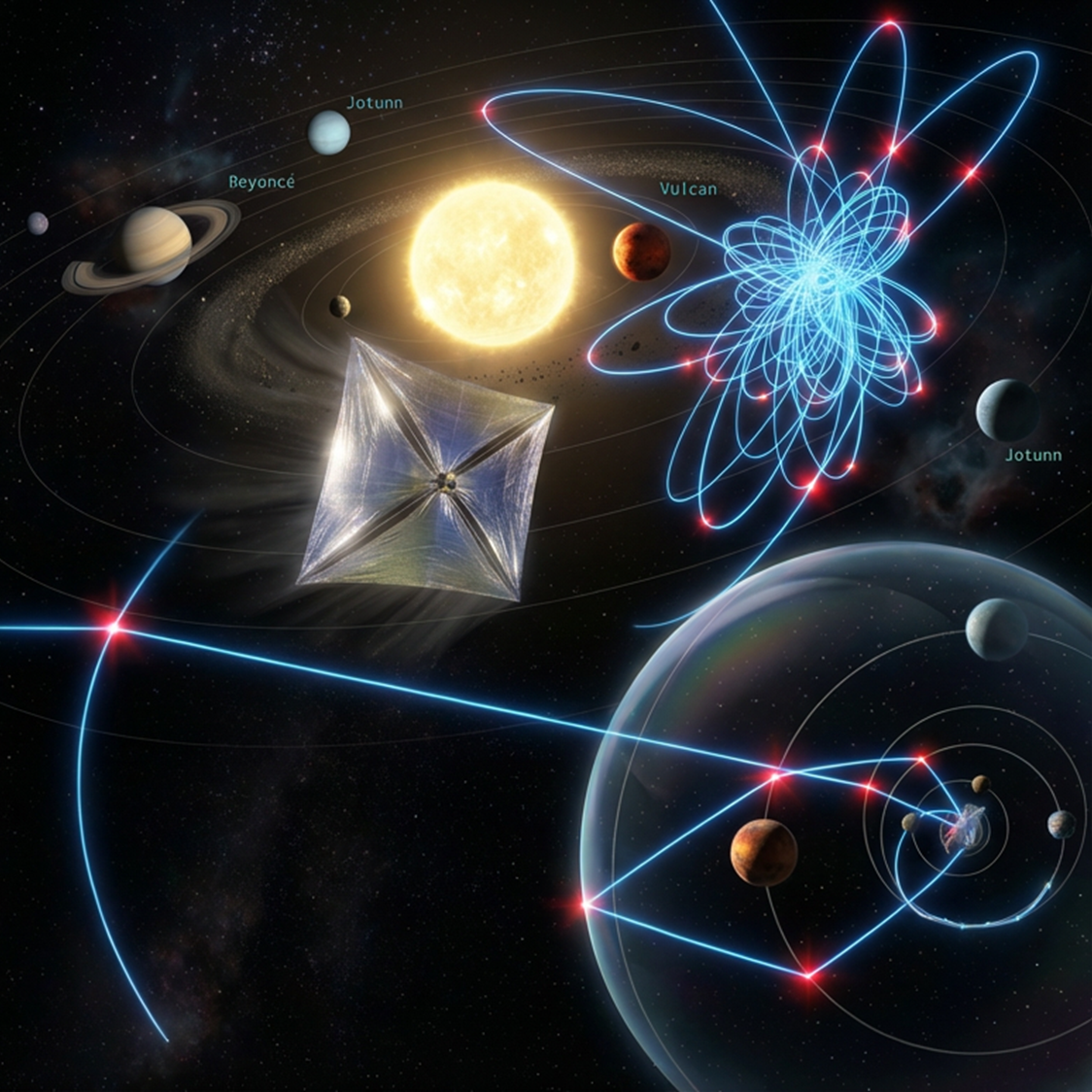 LAD团队用AI生成的无人飞船探测轨迹概念图。
