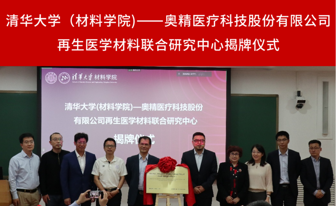 4月23日,清华大学(材料学院)-奥精医疗科技股份有限公司再生医学材料联合研究中心揭牌仪式暨第一次管委会会议在逸夫技术科学楼举行。