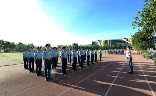 10月1日清晨,清华大学学生国旗仪仗队在主楼前广场举行升国旗仪式,庆祝新中国成立76周年。