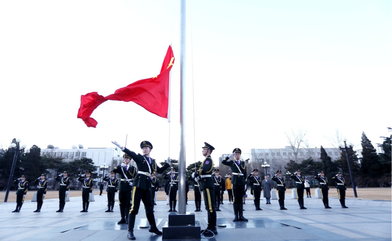 10月1日清晨,清华大学学生国旗仪仗队在主楼前广场举行升国旗仪式,庆祝新中国成立76周年。