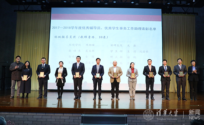 2018.1212月21日下午,清华大学2018年辅导员大会在大礼堂举行。校党委书记陈旭,党委副书记向波涛,1977级校友、吉林省委原副书记、林枫长子林炎志,中国人民大学新闻学院党委原书记、刘冰之子刘夏阳,学校老领导方惠坚、胡显章等出席大会。