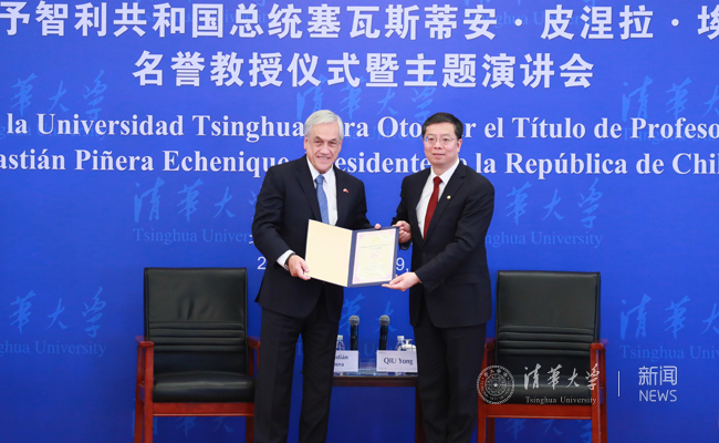 智利总统皮涅拉访问清华 接受名誉教授学衔 发表主题演讲