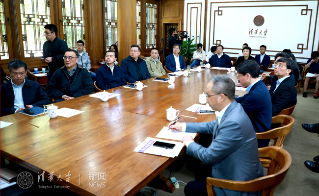 2019.044月30日上午,纪念五四运动100周年大会在人民大会堂隆重举行,中共中央总书记、国家主席、中央军委主席习近平出席大会并发表重要讲话。清华大学党委理论学习中心组在工字厅东厅会议室组织集体收看大会电视直播。校党委书记陈旭,校党委副书记、校长邱勇等中心组成员,部分老领导,相关部门负责人和院系师生代表一起收看了直播并参加学习讨论。