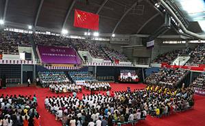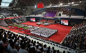 2014.099月3日上午,清华大学2014级研究生新生开学典礼在综合体育馆举行。校领导陈吉宁、陈旭、谢维和、韩景阳、史宗恺、邓卫、姜胜耀、吉俊民出席典礼。典礼由校长助理、研究生院院长杨斌主持。