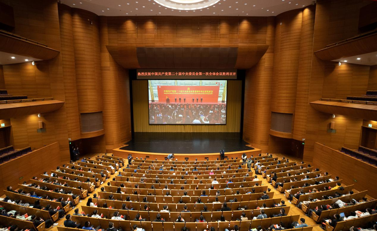 2022.10党的二十大是在全党全国各族人民迈上全面建设社会主义现代化国家新征程、向第二个百年奋斗目标进军的关键时刻召开的一次十分重要的大会。全校师生员工要更加紧密地团结在以习近平同志为核心的党中央周围,高举中国特色社会主义伟大旗帜,踔厉奋发、勇毅前行,以实际行动迎接党的二十大胜利召开,为全面建设社会主义现代化国家、全面推进中华民族伟大复兴作出新的更大的贡献!