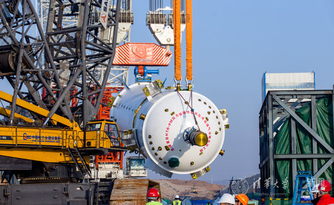 清华主持设计高温堆示范工程首台压力容器吊装就位