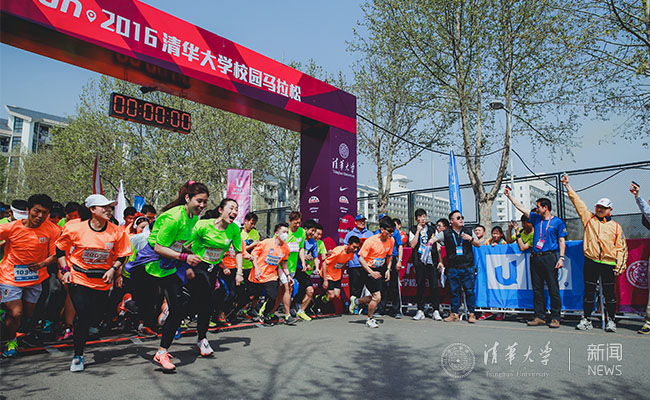 2016.044月9日下午,第二届U-run2016清华大学校园马拉松在风景如画的清华校园内举行,共有2791名学生、教师和校友参加10公里和半程马拉松比赛,2705人完赛。北京团市委副书记、1994年机械系博士毕业生熊卓,清华大学党委副书记史宗恺等为比赛鸣枪。