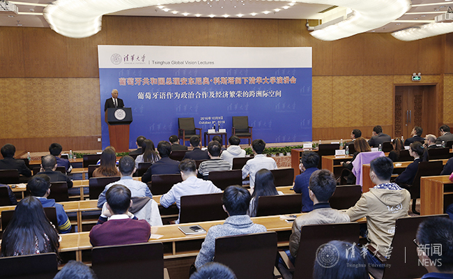 2016.1010月9日下午,在华访问的葡萄牙总理安东尼奥·科斯塔访问清华大学,并做客清华大学“海外名师讲堂”第203讲,发表题为“葡萄牙语作为政治合作及经济繁荣的跨洲际空间”的主题演讲。