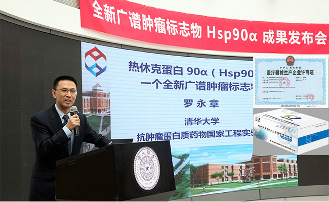 2016.102013年,清华大学罗永章团队通过肺癌临床试验在世界上首次证明肿瘤标志物血浆热休克蛋白90α(Hsp90α)可用于肝癌患者的检测;经过在医疗机构的推广使用,现在这项成果已被国家食品药品监督管理总局批准在临床中使用,这标志着首个由我国科学家定义、并获准用于临床的广谱肿瘤标志物诞生,对提高癌症诊疗水平具有深远意义。