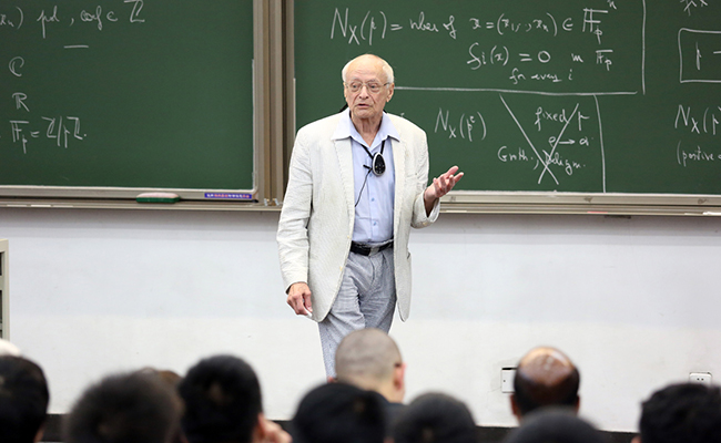 4月21日晚,法国著名数学家让-皮埃尔·塞尔(Jean-Pierre Serre)教授在清华大学西阶梯教室做主题为“关于模p意义下多项式方程解的个数”的思廉讲座。