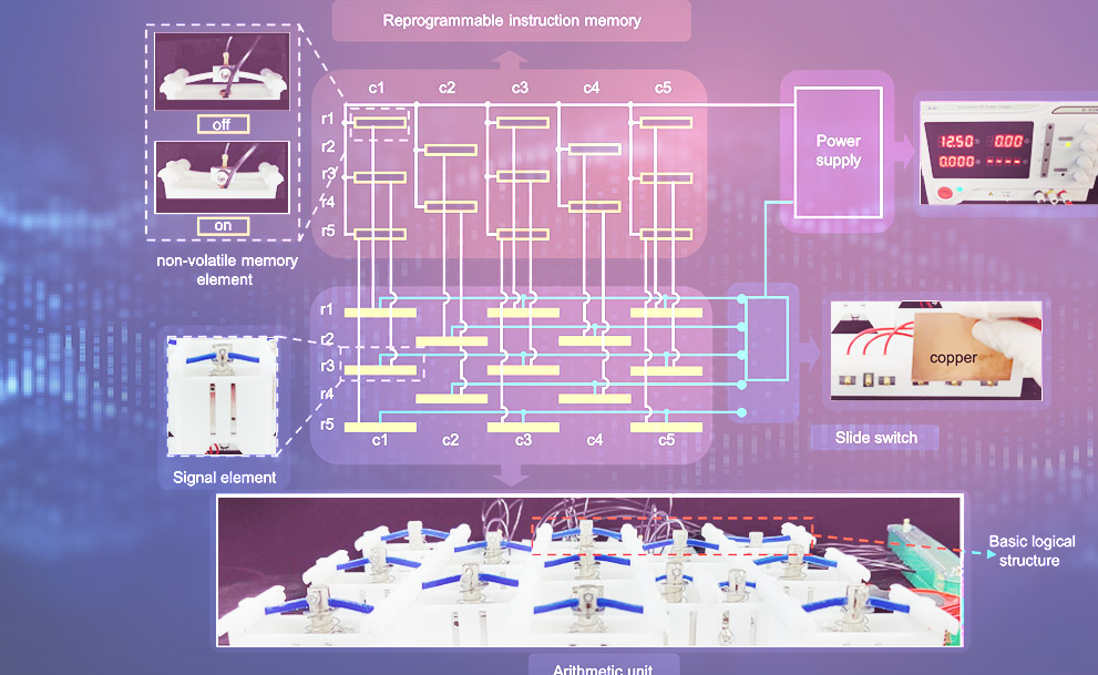 清华大学航天航空学院陈常青课题组将冯·诺依曼计算机的思想与力学超材料单双稳态变形特性相结合,设计和实现了冯·诺依曼构架下的机械逻辑计算系统;采用或非门阵列和双稳态曲梁元胞实现了运算器和存储器;还通过对半加器、易失性和非易失性存储器的实验,...