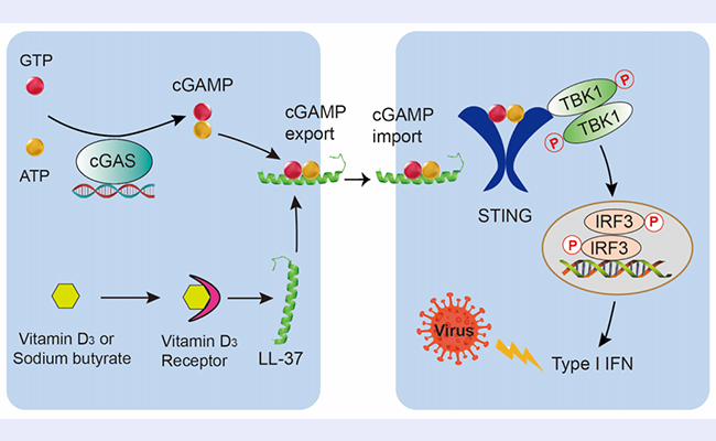 近日,清华大学药学院张从刚课题组在发现人类宿主防御肽LL-37是一种高效的cGAMP转运体,可以通过与cGAMP特异性结合从而双向跨细胞膜转运cGAMP,传播和放大“第二信使”cGAMP携带的免疫信号,进而在靶细胞内激活强烈的STING信号以及干扰素介导的宿主抗病毒...