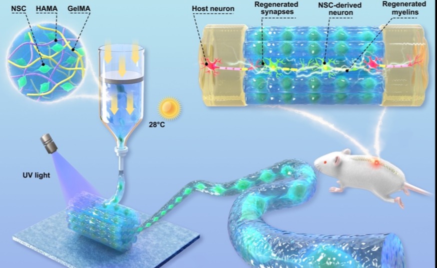 近日,清华大学材料学院王秀梅团队和清华长庚医院神经外科王贵怀主任团队基于生物3D打印技术成功制备了一种有生命的类神经纤维,该纤维由类似于天然细胞外基质的水凝胶包裹着高密度的神经干细胞组成,纤维定向排列并组装为精准适配脊髓损伤区域大小的微型...