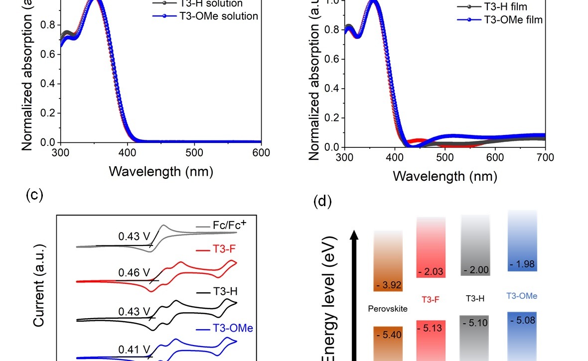 近日,清华大学电机系易陈谊课题组基于三苯胺取代的吡咯设计合成了一类新型低成本空穴传输材料T3,并且可以高效地对其空穴传输等性能进行调控,基于该材料的钙钛矿太阳能电池获得了24.85%的高光电转化效率,相关成果发表在国际学术期刊《德国应用化学》(A...