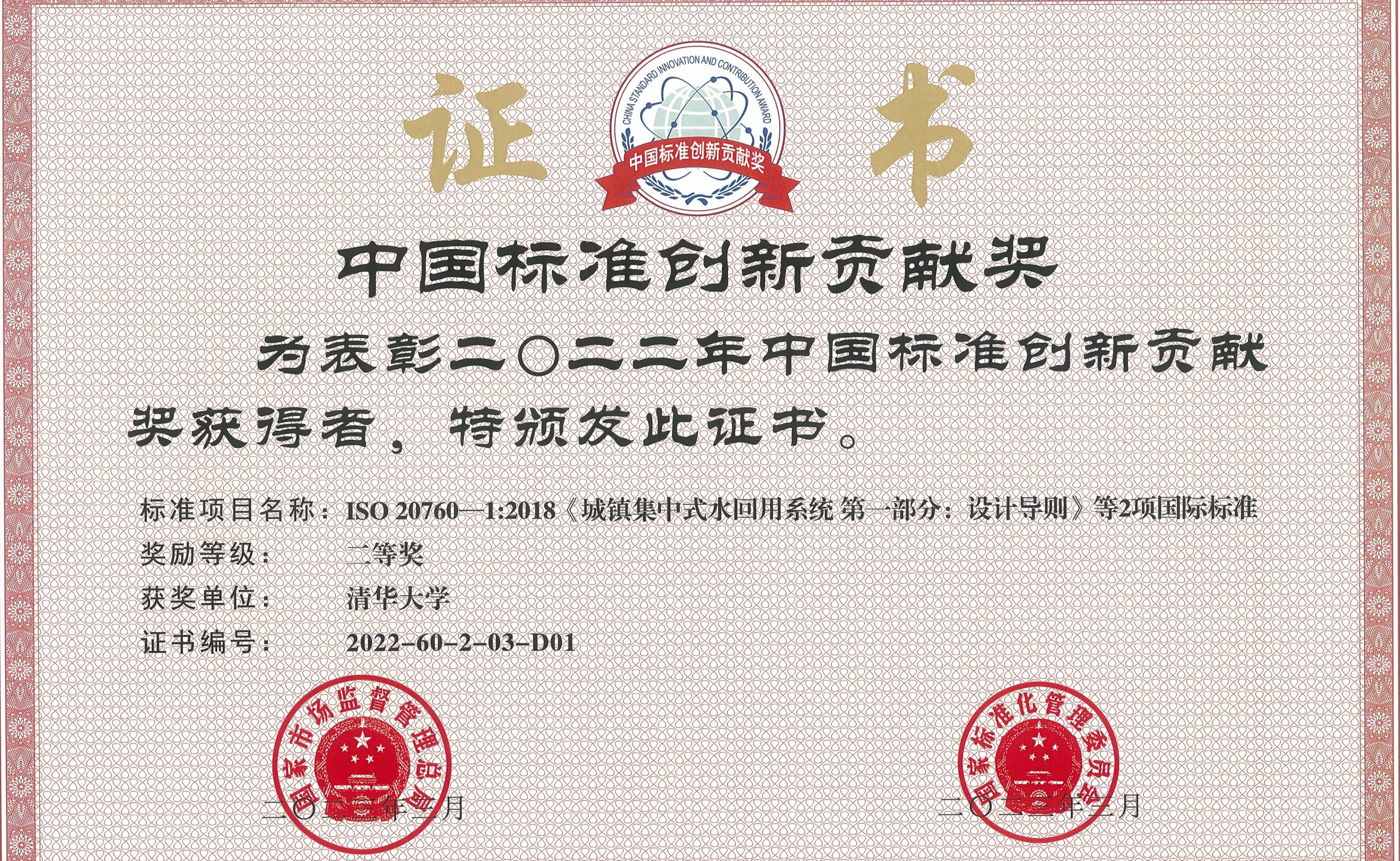 2023.04清华大学牵头完成的再生水领域国际标准荣获中国标准创新贡献奖