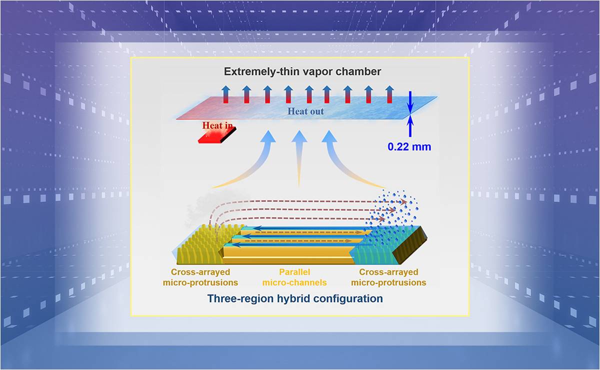 近日,清华大学材料学院钟敏霖教授课题组利用激光微纳制造方法,制备出具有高光热蒸发效率的高效薄液膜蒸发表面,并进一步提出复合构型超薄吸液芯结构,实现目前国际最薄之一(0.22mm)的智能手机高效散热超薄均热板(VC)的全激光制备。