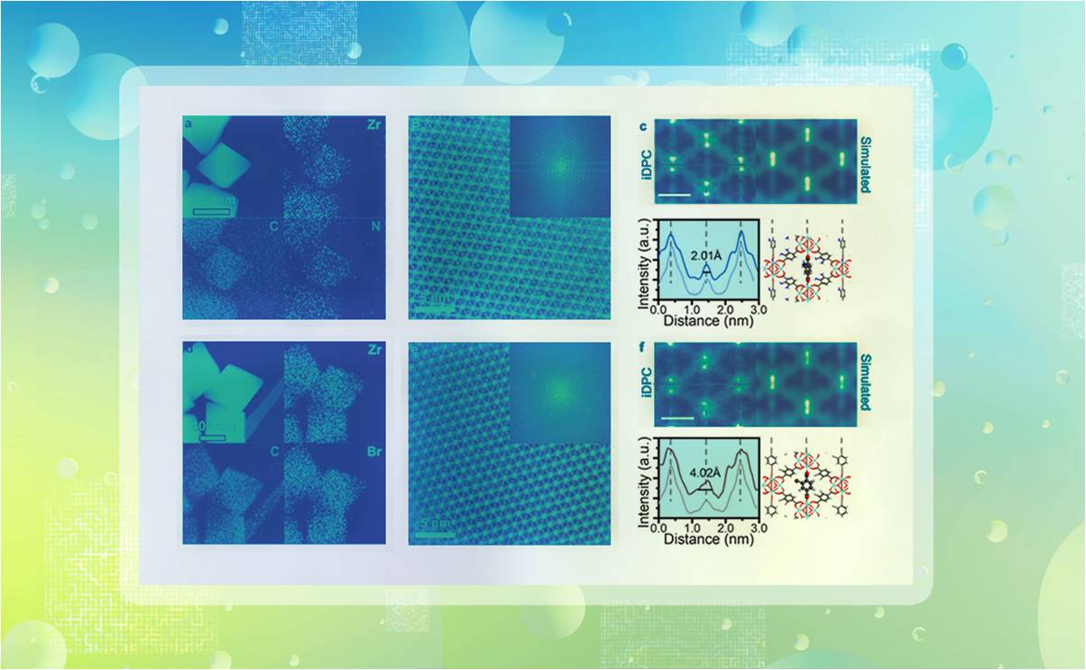 近日,清华大学化工系王铁峰教授课题组和陈晓助理研究员合作,通过积分差分相位衬度扫描透射电子显微技术(iDPC-STEM),实现了对UiO-66这种典型MOF中Zr金属节点和对苯二甲酸(BDC)配体的原子尺度成像,并研究了不同配体取代基对MOF柔性的影响。