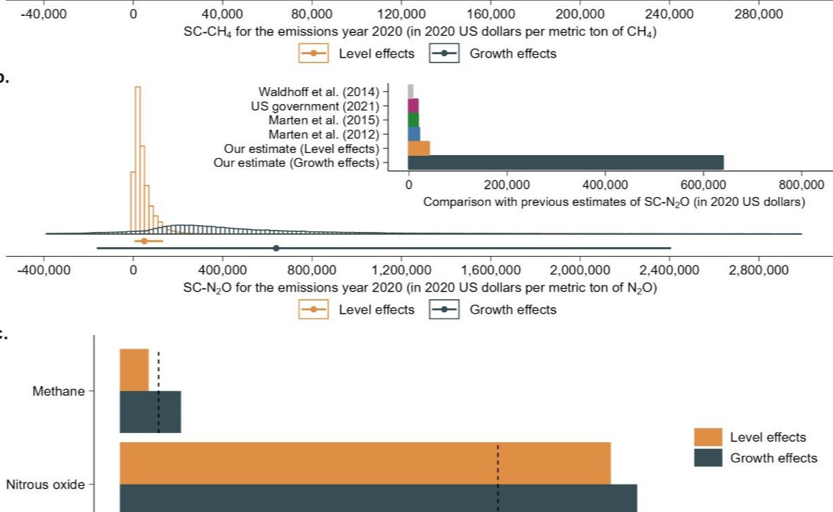 清华大学核研院助理研究员王天鹏和教授滕飞,构建了一个多模型评估框架,在考虑不同的损失函数后,得出的CH4和N2O社会成本估算值最高约为之前文献结果的2至50倍,反映出其造成的气候损失可能远高于预期。