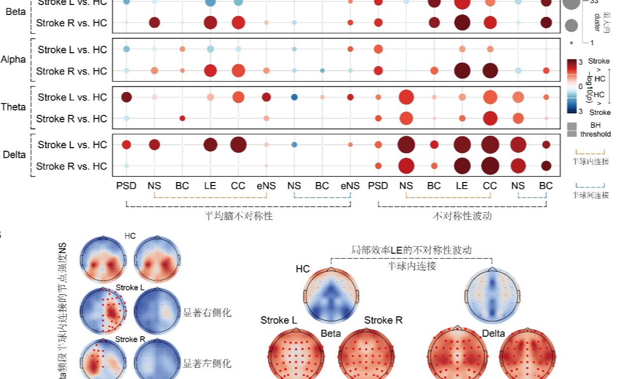 近日,清华大学电子工程系窦维蓓教授和北京清华长庚医院康复医学科潘钰教授团队研究提出的多层级脑不对称性综合分析(CAMBA)框架,将三个层级的脑交互整合到统一的脑不对称性分析管道,捕捉节点和半球水平的脑不对称性动态。该框架被应用于健康人,卒中患...