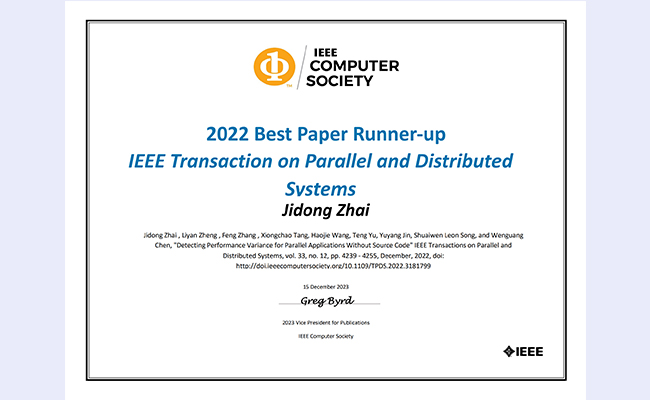 2024.01计算机系师生获得IEEE并行与分布式系统期刊2022年度最佳论文奖亚军