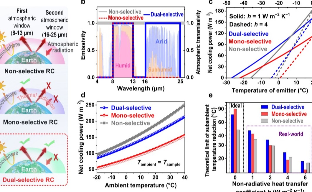 近日,清华大学化工系张如范副教授课题组在辐射制冷材料研究方面取得重要进展,设计并制备了一种可以同时利用两个大气窗口(8–13 μm和16–25 μm)来降温的双选择型(Dual-selective)热发射体作为高性能辐射制冷材料。