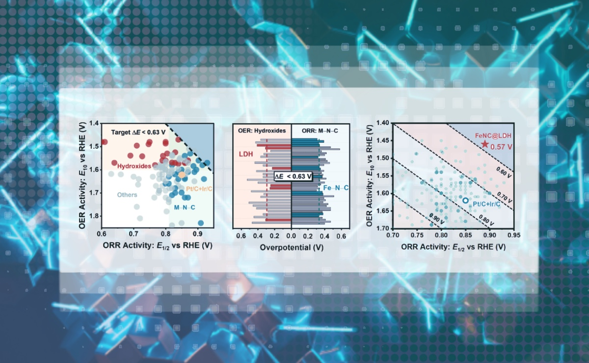 近日,清华大学化学工程系张强教授课题组在金属空气电池双功能催化领域取得突破性成果。研究团队实现了基于数据驱动,创造了水系双功能(氧还原与氧析出反应)催化ΔE=0.57 V的活性纪录,为水系金属空气电池的设计与开发提供了新的思路。