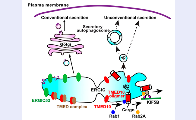 近期,清华大学药学院张敏团队与清华大学生命学院葛亮团队的研究揭示了Rab蛋白Rab1和Rab2对TMED10介导的非经典分泌途径的显著调控作用。