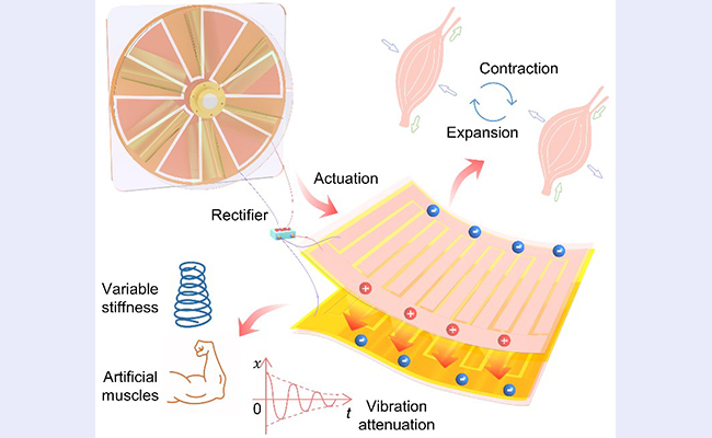 清华大学机械系智能与生物机械实验室使用旋转独立式摩擦纳米发电机(RF-TENG)通过整流单元驱动多层柔性薄膜静电阻尼器(EAD)提供持续、稳定的动力。这项基于摩擦电高压的柔性薄膜静电吸附技术,不仅在能源供应上实现了自供电,还展现了轻便性、安全性、...