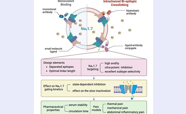 NaV1.7是一类新型镇痛疗法的潜在靶点,但目前的抗NaV1.7抗体亲和力和效力都比较低。为了克服这一挑战,近日,清华大学药学院杜娟娟副教授团队通过“通道内双表位交联策略”针对电压门控钠通道NaV1.7构建了强效且具有选择性的抗NaV1.7抗体。