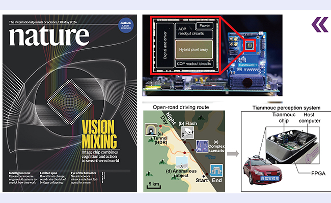 11月19日下午,2024年世界互联网大会领先科技奖颁奖典礼在浙江乌镇举行。清华大学精仪系类脑团队“天眸芯(Tianmouc)”(基于原语表示的类脑互补视觉感知芯片)获得领先科技奖(基础研究组,共评选出3项)。