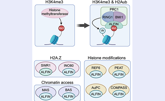 2024.12生物医学交叉研究院何新建课题组发现拟南芥AL蛋白介导植物组蛋白H3K4me3和H2Aub修饰之间偶联