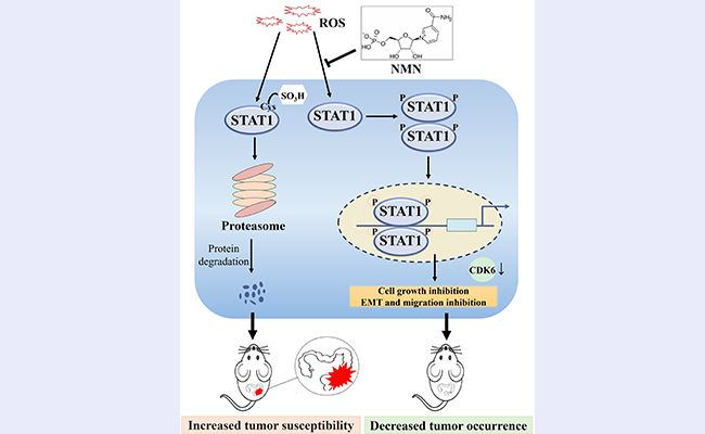 2024.12生命学院邓海腾课题组揭示烟酰胺单核苷酸(NMN)通过提高抑癌因子STAT1的稳定性预防结直肠癌的发生
