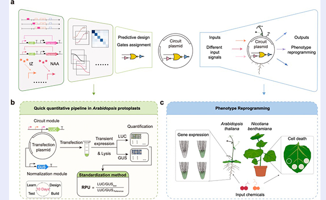 近日,清华大学药学院张数一团队提出了一种新型植物基因线路设计框架。这一研究框架为植物基因线路的可预测设计和表型重编程提供了新方法,探索了从基因线路可预测设计到表型重编程的连接。