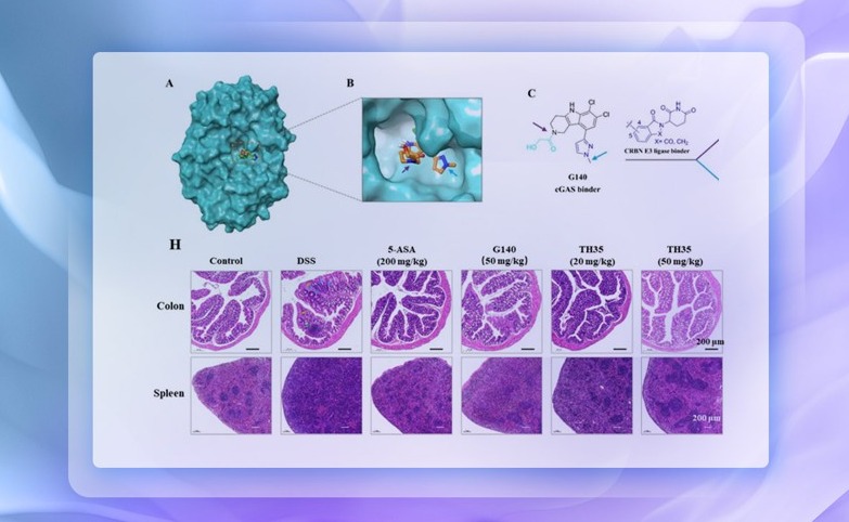 近日,清华大学药学院尹航课题组研究报道了首个CRBN介导的cGAS降解剂TH35,并探究其在溃疡性结肠炎(UC)模型中的治疗潜力,证明了cGAS靶向降解策略在安全性和有效性上相较于抑制剂的显著性优势。